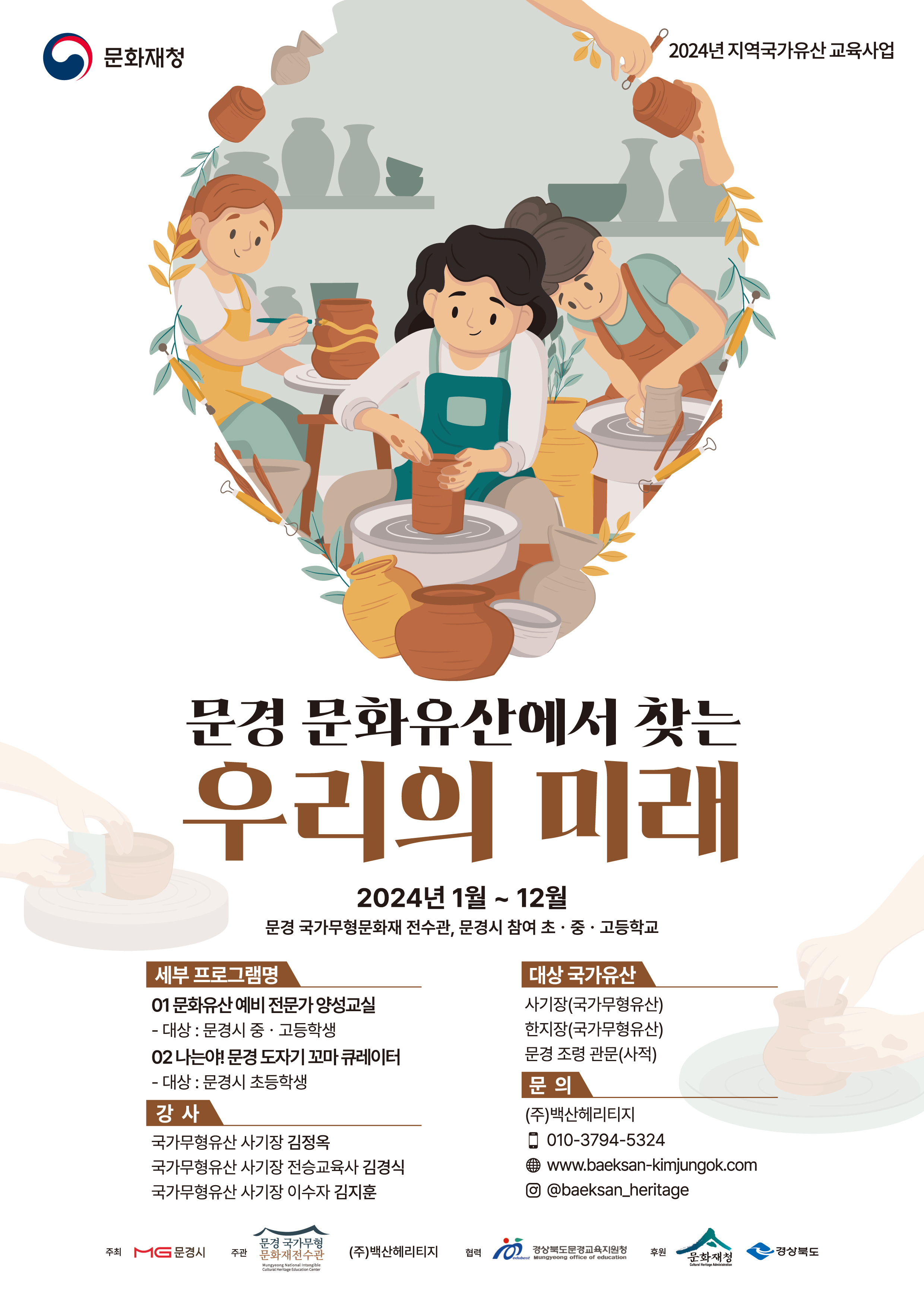 지역문화유산 교육사업 : 문화유산 예비전문가 양성교실(방문학교), 나는야! 문경 도자기 꼬마 큐레이터(체험교실)