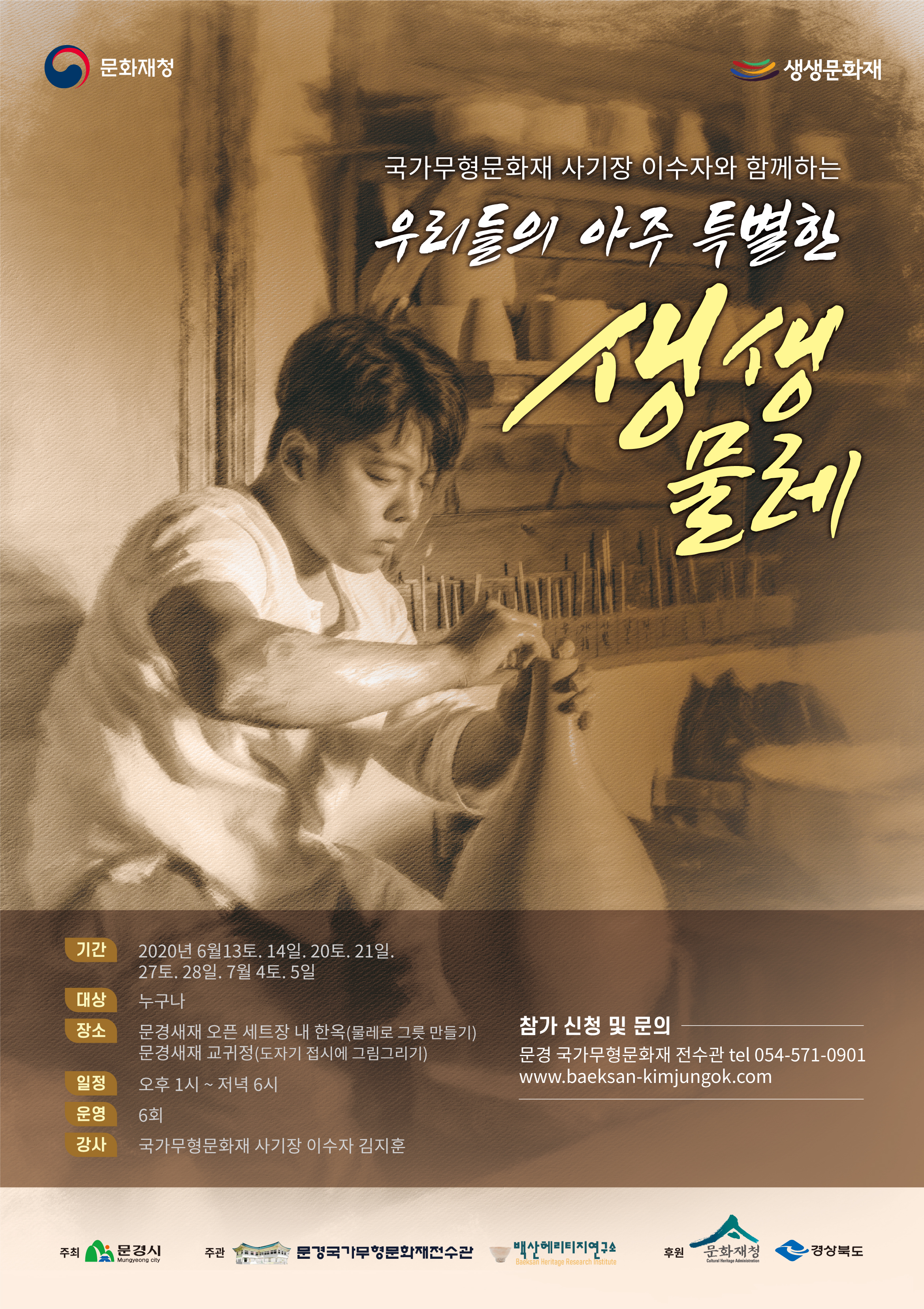 생생문화재사업 : 문경새재 사기장 힐링문화캠프, 조선왕실 사기장의 24시 생생체험, 우리들의 아주 특별한 생생물레, 문경새재 인문학 아카데미, 문경의 도자기 생태환경 탐구하기,