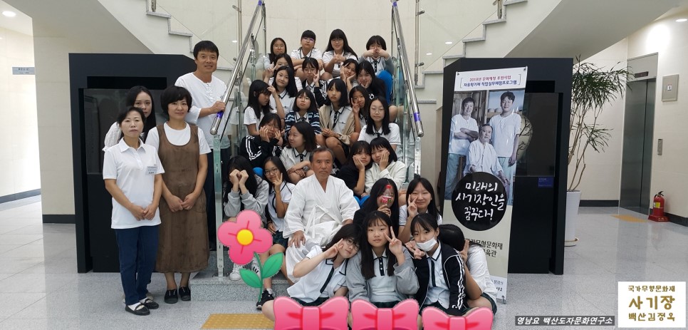 - 2018년 문화재청 전수교육관 활성화 사업 [사기장전수관 자유학기제 10차 수업] "국가무형문화재 백산 김정옥 사기장(영남요)과 함께하는 미래의 사기장인을 꿈꾸다!" 문경여중학교 1학년 5반