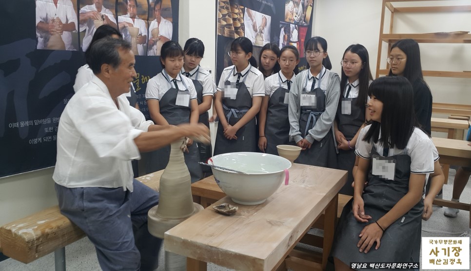 - 2018년 문화재청 전수교육관 활성화 사업 [사기장전수관 전구교육 자유학기제 12차 수업] "국가무형문화재 백산 김정옥 사기장(영남요)과 함께하는 미래의 사기장인을 꿈꾸다!" 문경여중학교 1학년 7반