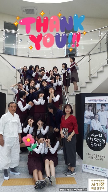 - 2018년 문화재청 전수교육관 활성화 사업 [사기장전수관 자유학기제 11차 수업] "국가무형문화재 백산 김정옥 사기장(영남요)과 함께하는 미래의 사기장인을 꿈꾸다!" 문경여중학교 1학년 4반