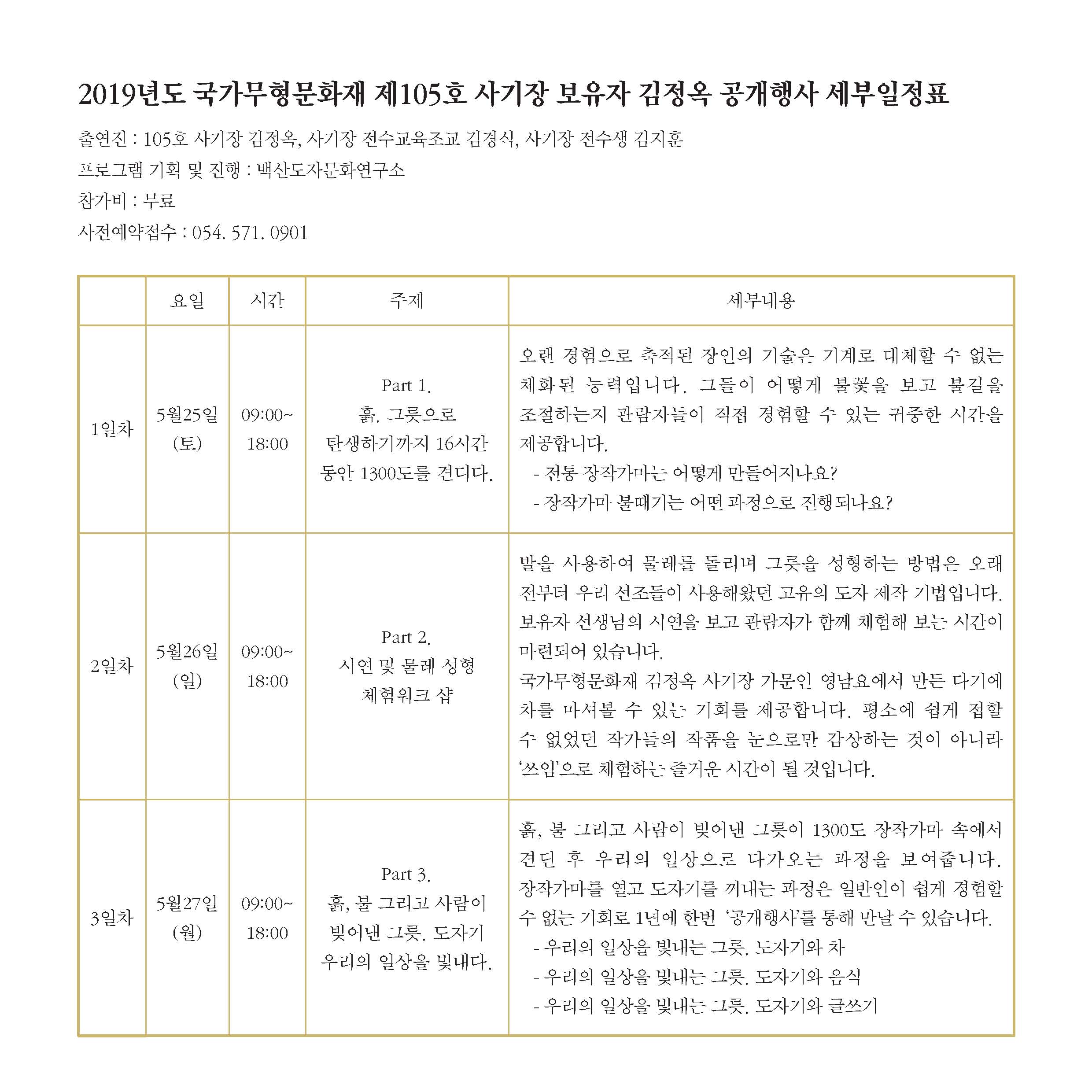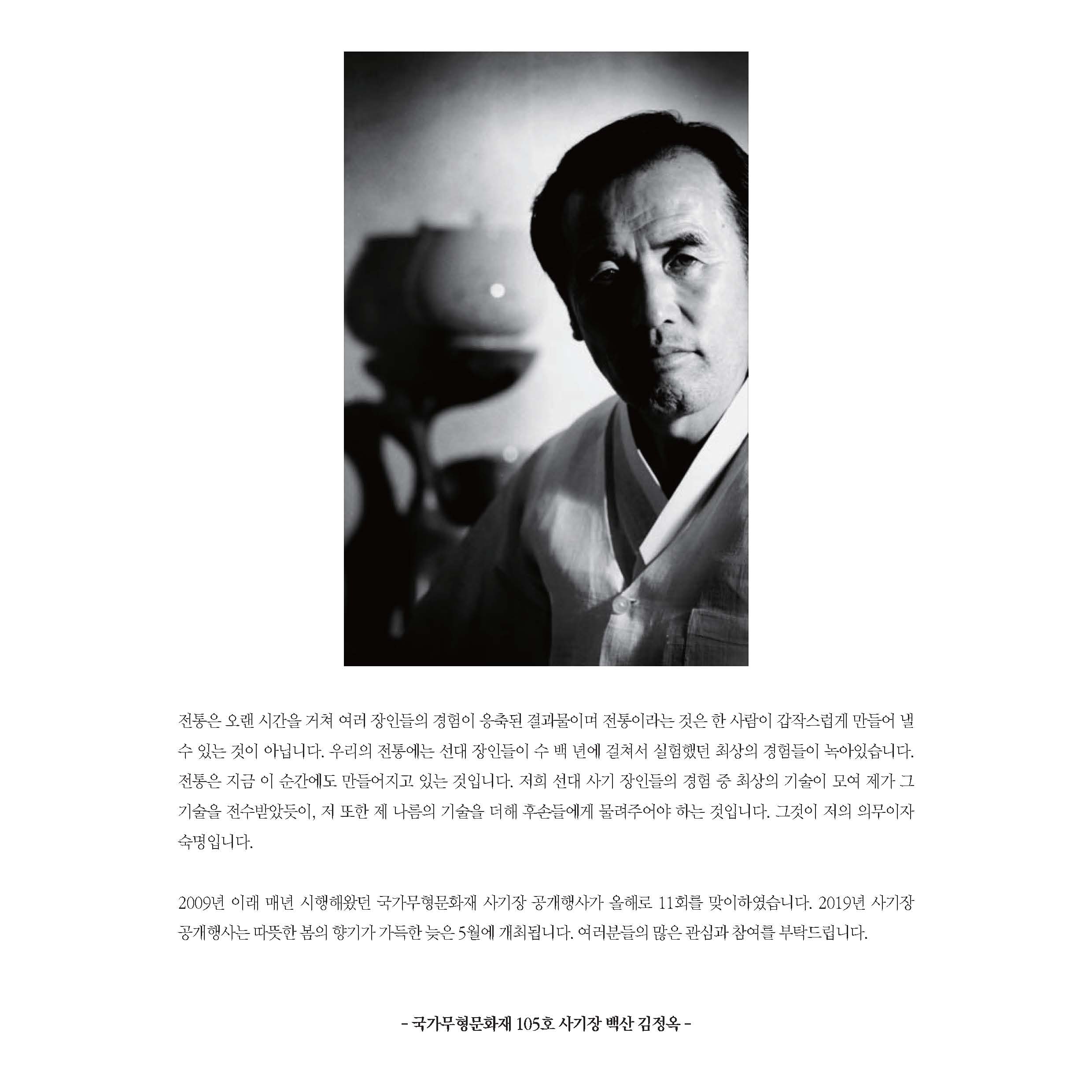 2019 국가무형문화재 사기장 김정옥 공개행사 '삼백년 전통을 만나다'