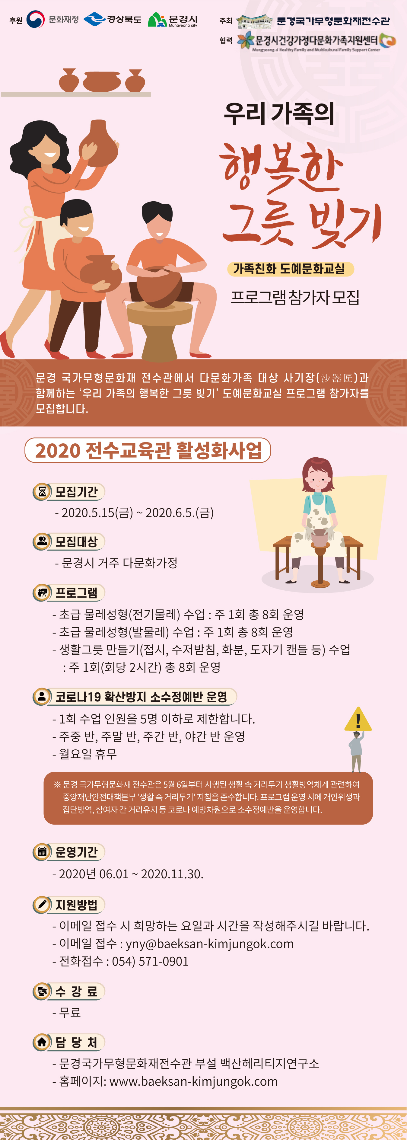 [2020 문화재청 무형문화재 전수교육관 활성화사업] 우리 다문화가정의 행복한 그릇빚기