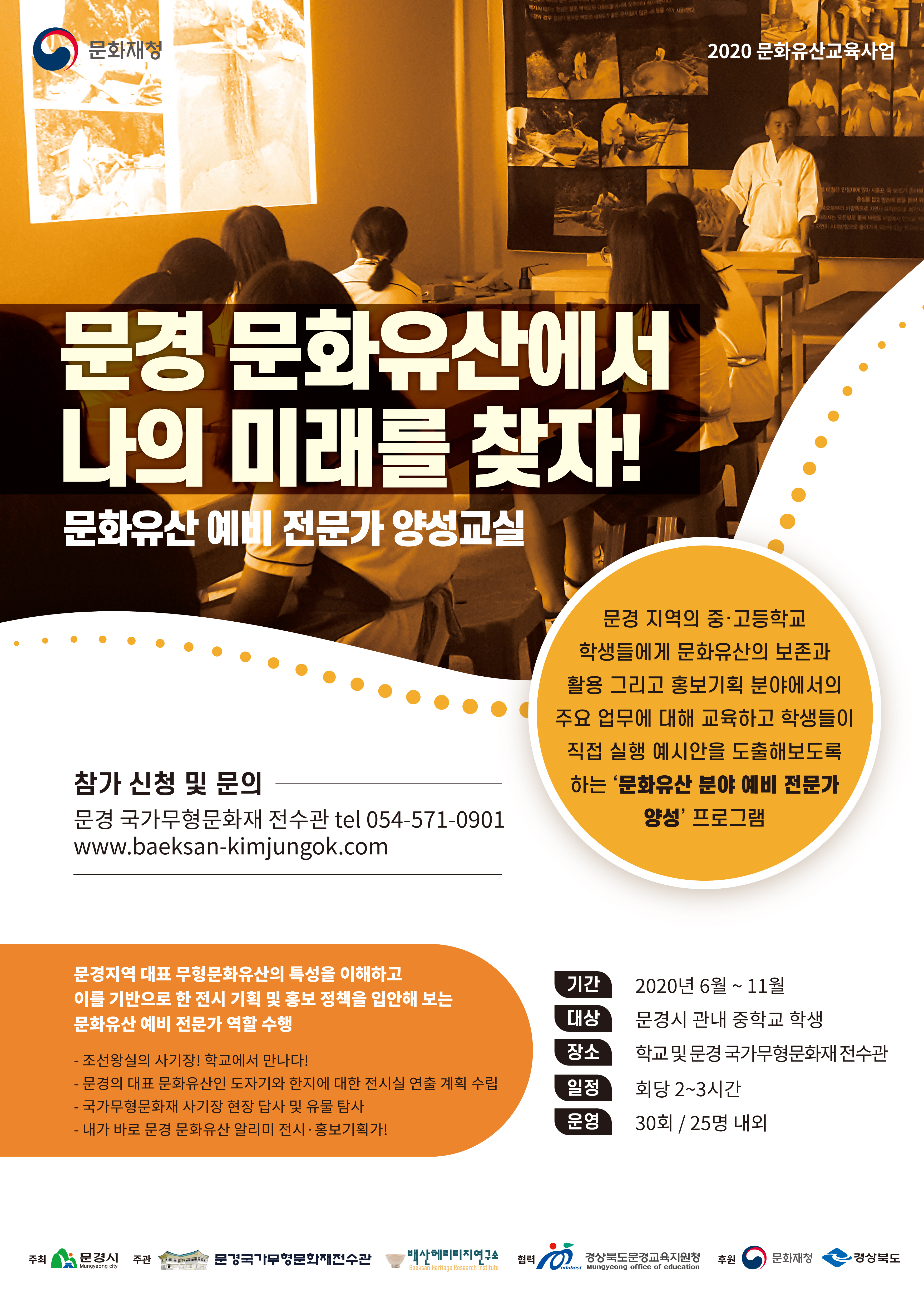 지역문화유산 교육사업 : 문화유산 예비전문가 양성교실(방문학교), 나는야! 문경 도자기 꼬마 큐레이터(체험교실)