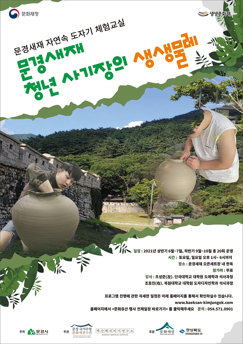 생생문화재사업 : 문경새재 사기장 힐링문화캠프, 조선왕실 사기장의 24시 생생체험, 우리들의 아주 특별한 생생물레, 문경새재 인문학 아카데미, 문경의 도자기 생태환경 탐구하기,