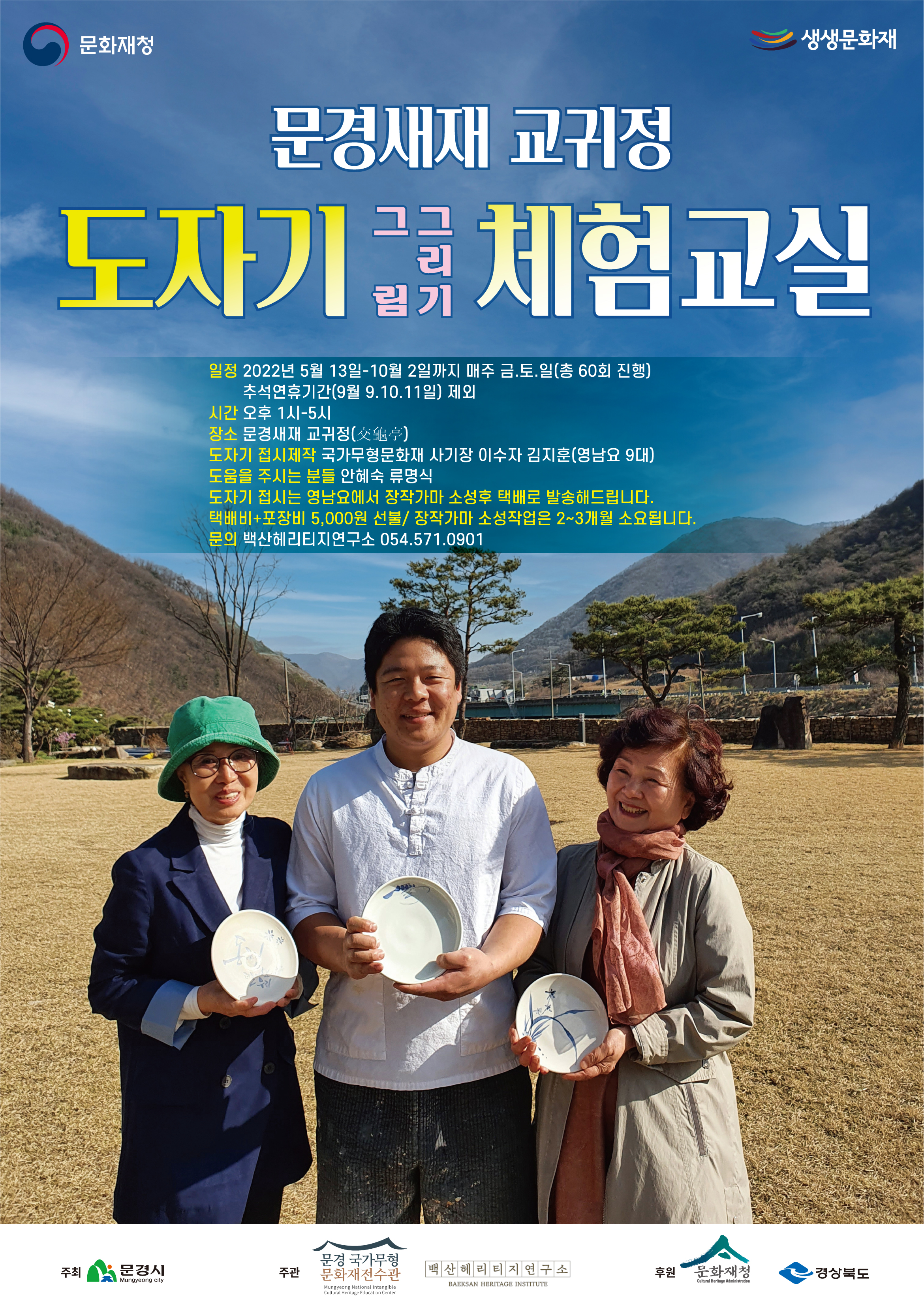 생생문화재사업 : 문경새재 사기장 힐링문화캠프, 조선왕실 사기장의 24시 생생체험, 우리들의 아주 특별한 생생물레, 문경새재 인문학 아카데미, 문경의 도자기 생태환경 탐구하기,